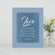 Cette création présente le verset biblique 1 Corinthiens 13:7, affiché sur un fond riche en gouache bleue. Le fond est composé de diverses nuances de bleu, habilement mélangées pour créer une apparence presque solide tout en introduisant une profondeur subtile grâce à de légères variations de couleur. Autour du verset, un charmant cadre bleu orné de pois blancs ludiques ajoute une touche fantaisiste à l'ensemble de la composition.