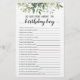 Achetez ce jeu de verdure éditable et profitez de la haute qualité 20 Questions sur la carte Birthday Boy pour votre événement! C'est un modèle de jeu, Vous pouvez changer les questions comme vous le souhaitez! Ambiance verdoyante aquarelle.