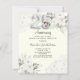 Pour un 25ème anniversaire de mariage élégant et romantique. Arrière - plan de couleur ivoire décoré de fleurs blanches, de roses et de dentelle blanche. Personnalisez et ajoutez votre photo, vos noms et vos détails. Le numéro 25 est écrit avec une police de type fausse ballons d'argent. 1 feuille = 1 invite imprimé bord à bord.