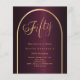 Une élégante invitation au 50e anniversaire. Un arrière - plan bordeaux avec une arche dorée à l'avant. 1 feuille = 1 invite imprimé bord à bord.