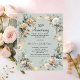 Un arrière - plan vert sage. Décoré de fleurs blanches et jaunes et d'un ruban doré. Personnalisez et ajoutez un nom et des détails. 1 feuille = 1 invite imprimé bord à bord.