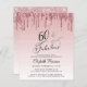 Élégante, chic et économique invitation à la fête du 60e anniversaire avec "60 & Fabulous" écrit en script élégant contre un arrière - plan rose sombre, avec une fausse parties scintillant en or rose et rose qui coule du haut.