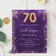 Célébrez un 70ème anniversaire spécial avec cette magnifique invitation, parfait pour une soirée élégante. L'arrière - plan violet foncé présente une belle texture inégale, accentuée par l'or rose et les faux éclats dorés pour une touche de brillant. Le nom est écrit dans un script délicat et écrit à la main, ajoutant une touche personnalisée et sophistiquée. Customisez l'invitation en ajoutant le nom et tous les détails importants du parti. Ce design luxueux donne le ton d'une fête inoubliable. 1 feuille = 1 invite imprimé bord à bord.