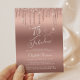 Élégante, chic et économique invitation de fête de 75ème anniversaire avec "75 & Fabulous" dans un script blanc élégant contre un arrière - plan d'or rose, avec des gouttes de parties scintillant d'or rose faux. Personnalisez avec son nom et les détails de la soixante-quinzième fête d'anniversaire.