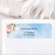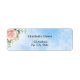 Un ciel bleu comme arrière-plan. Décoré avec une rose couleur or rose et rose blush, des fleurs et du feuillage de eucalyptus et des feuilles dorées fausses. Personnalisez et ajoutez votre nom et adresse. Lettres noires.