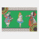 Alice au pays des merveilles. Un collage de personnages peints à la main donne vie à cette histoire classique pour enfants : Alice, la reine des coeurs, le roi des coeurs, Humpty Dumpty, The Mad Hatter et le lapin blanc. Customisez la couleur arrière - plan pour correspondre à votre décor