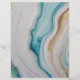 Ce magnifique design abstrait capture la beauté fascinante de l'agate avec une touche côtière. Des bandes scintillantes de turquoises lumineux, turquoise et blanc imitent les motifs complexes que l'on trouve dans les précieux opales, tout en évoquant le flux serein des courants océaniques. Les veines dorées et les taches entrecoupées dans la pièce ajoutent une touche d'opulence, rappelant les rivages baisés par le soleil. Les lignes et les calques ondulants et lisses créent un sens de profondeur et de mouvement, tout comme le baguage dans les agates naturelles. Ce morceau mêle harmonieusement l'allure des pierres précieuses à la tranquillité d'une vue sur la mer, ce qui en fait un endroit parfait pour ceux qui apprécient à la fois les merveilles géologiques et l'esthétique côtière dans une forme moderne et abstraite.