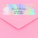 Un fond holographique tendance avec des couleurs de licorne et des couleurs arc-en-ciel en rose, violet, or rose, vert menthe. Décoré de gouttes de paillettes fausses en or rose, rose et violet. Personnalisez et ajoutez votre nom et adresse. Parfait pour les invitations de shower de mariage, shower de bébé ou fête d'anniversaire.