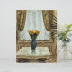 Table et chaises vintages personnalisées avec vase de roses jaunes, papier de scrapbook et sépia vintage au fond. Des idées d'artisanat, d'anniversaire et de découpage.