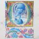 Elégante lettre O avec Eolo, Roi des Vents... Miniature médiévale antique de Sienne Italie.