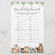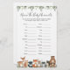 Baby shower à thème pour animaux de bois nom de la carte de jeu pour animaux de bébé comprend une aquarelle pour animaux de bois illustration et aquarelle vert eucalyptus garland et élégante police manuscrite.