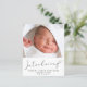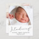 Une annonce de naissance simple et mignonne, neutre en termes de sexe et abordable. Le recto présente la photo de votre nouveau-né, son nom complet, sa date d'arrivée et ses statistiques de naissance, ainsi que « Introducing » écrit dans un style élégant se terminant par un flourish de cœur. Au verso, vous pouvez ajouter une photo supplémentaire, les noms des parents et des frères et sœurs, ainsi qu'un message de remerciement, de visite ou autre.