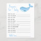 Un petit en chemin avec cette invitation au baby shower sur le thème de la mer, avec baleine à bébé dans des aquarelles bleu doux.
