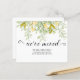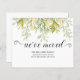 Envoyez à votre famille et à vos amis cette carte de faire-part botanique à budget élégant pour leur faire connaître votre nouvelle adresse. Ce design moderne présente une bordure de verdure délicate et des fleurs jaunes crémeuses. Au centre de l'écriture décorative on peut lire "We've Moved" et ci-dessous, votre nom de famille et votre adresse pour personnaliser. Au verso de la carte se trouve un message et votre signature accentuée par une poignée de feuilles. Conçu pour vous par Susan Coffey.