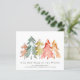 Faire-part mobile simple et élégant et économique avec une belle aquarelle de pins abstraits en vert muet, rouge, or et orange. Sur le devant, personnalisez le texte "Notre Nouveau Cou des Bois", votre nom de famille et votre nouvelle adresse. Au contraire, vous pouvez personnaliser votre faire-part de façon plus détaillée et inclure les numéros de téléphone et les adresses e-mail si vous le souhaitez.