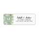 Élégantes étiquettes d'adresse de retour monogrammées avec un feuillage d'eucalyptus aquarelle rustique simple et des branches dorées, avec une calligraphie script bouclé noir pour les noms et une police serif simple pour l'adresse. Un monogramme élégant et simple et un design botanique pour couronner vos invitations de mariage, invitations à une baby shower, invitations à une fête d'anniversaire, faire-part de nouvelle maison / déménagement, etc.