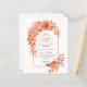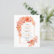 BUDGET Arch et fleurs orange QR code mariage de automne invitation. Cette faire-part de mariage élégante présente une arche boho décorée de fleurs orange vif et de feuilles verts, ce qui donne un design saisissant et captivant. Le mélange de dalia et de fleurs de rose dans les différentes nuances d'orange apporte une touche romantique et élégante à l'esthétique générale. Le revers de l'invitation est maintenu minimal avec un fond blanc immaculé, assurant que l'attention reste sur la magnifique arche fleurie. En outre, l'incorporation d'un code QR pour les RSVP en ligne ajoute un élément contemporain et pratique à ce faire-part de mariage abordable.