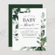 Budget Verdure Botanique Aquarelle Printemps Bébé Douche Invitations sur arrière - plan vert et blanc - comprend belle et élégante typographie de script avec feuilles botaniques modernes et verdure pour la fête spéciale Mère à être.