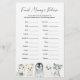La carte de jeu de la momie à thème animaux de l'Arctique baby shower finition murale comprend une illustration d'animaux d'hiver aquarelle et d'aquarelle verte guirlande à eucalyptus et élégante police manuscrite.