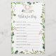 Les souhaits de baby shower à thème éléphant pour la carte de jeu pour bébé comprend une illustration d'éléphant aquarelle et aquarelle de la végétation eucalyptus garland et élégante police manuscrite.