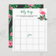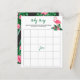 Baby shower invitation design avec flamingo rose avec frondes de feuilles de palmier vert luxuriant et fleurs d'hibiscus tropical. "Aloha Baby". Un motif à fleurs tropicales aux couleurs arrière - plans noires habille le dos de la carte.