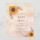 Pour un baby shower de style boho moderne. Un arrière - plan d'or rose, rustique et rustique à l'aspect rustique et rustique. Décoré de tournesols, de pelouse de pampas. Personnalisez et ajoutez un nom et des détails du parti.