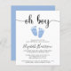 Jolie douche de bébé garçon abordable par invitation par mail avec "oh garçon" dans un script élégant avec des swashes et une aquarelle bleu pastel de pieds bébé. Sous vous pouvez facilement personnaliser la douche par mail détails.