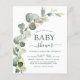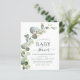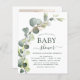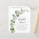 Eucalyptus Verdure Aquarelle botanique Succulente Printemps Genre Neutre bébé garçon ou bébé fille bébé douche Invitations sur arrière - plan blanc - comprend belle et élégante typographie script avec feuilles botaniques modernes et verdure pour la célébration spéciale Mère à être.