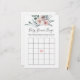 Boho rose thème baby shower carte de jeu de bingo avec une illustration rose d'aquarelle rose et aquarelle vert eucalyptus garland et élégante police de style manuscrit.