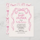 Ajoutez une touche de charme et de plaisir à votre célébration avec Whimsical Quirky Blush Bow Baby shower Invitation! Dotée d'un design joyeux dessiné à la main dans des tons rose vif et doux, cette invitation allie élégance et légèreté. Parfait pour honorer la future maman, il comprend une typographie fantaisiste et des détails créatifs qui donnent le ton d'un rassemblement joyeux et unique. Célébrez dans le style avec une invitation aussi douce et spéciale que l’occasion!