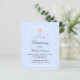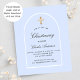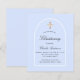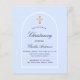 Un fond bleu clair et un cadre en arche. Personnalisez avec un nom et les détails de la cérémonie. Style d'écriture élégant et manuscrit.