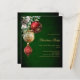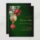 Pour une fête de Noël en famille et entre amis. Un arrière - plan vert inégal. Décoré de baubles rouges et dorés, un peu de verdure et un cône de pin. Personnalisez et ajoutez les détails. 1 feuille = 1 invite imprimé bord à bord.