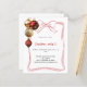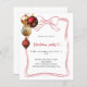 Pour une fête de Noël en famille et entre amis. Décoré d'un arc simple rouge dessiné à la main, de verdure et de billes rouges et dorées. Personnalisez et ajoutez les détails. Fête de Noël avec un coeur. Fond blanc. 1 feuille = 1 invite imprimé bord à bord.