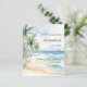 An elegant wedding invitation for a beach wedding, destination wedding. A watercolored sandy beach, ocean waves and palm trees as background.