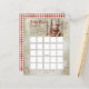 Vous attendez à un petit bébé doux pour les vacances ? Nous savons que vous pouvez juste "Bearly Wait" et nous sommes prêts à aider à célébrer avec ce Baby shower design "Bingo" avec un petit ours doux avec chapeau santa et sucre de canne. Le petit ours est accompagné d'une pile de cadeaux et à ses pieds, un lit de verdure de vacances pour compléter l'occasion festive. L'arrière est orné d'un arrière - plan rouge et d'un motif de flocons blancs.