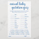 Le baby shower ou le sexe du quiz gestationnel de grossesse animal révèle un jeu de fête (avec les réponses ci-dessous) présentant un script décontracté et amusant. CLÉ DE RÉPONSE : Cochon 122, Kangaroo 37, Cheval 336, Cat 63, Lapin 33, Elephant 645, Canard 28, Mouton 148, Vache 284, Baleine 360, Lion 108, Chien-63, Souris-20, Giraffe-419, Ours-220, Chimpanzé-243, Chèvre-150 Pour d'autres couleurs ou des produits correspondants, visitez le magasin JustFharryn Zazzle, ou contactez le designer, c/o Fharryn@yahoo.com Tous droits réservés. #zazzlemade