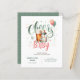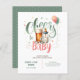 Bières et bouteilles rustiques et mignonnes, Cheers to Baby, Bébé brasse avec fleurs sauvages, verdure dans la sauge et couleurs pêche invitation baby shower, neutre genre. Champs de texte des deux côtés.