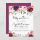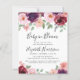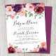 Elégant et chic, le baby shower "Baby in Bloom" est très abordable, avec des bouquets d'aquarelle fleurie, de vin et de couleur bordeaux, un script élégant et une typographie moderne simple.