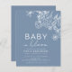 Fêtez l'arrivée d'un nouveau lot de joie avec un beau baby shower thématique Baby in Bloom. Rejoignez-nous pour un après-midi rempli d'amour et de bonheur alors que nous honorons les futurs parents. L'invitation est faite par un arrière - plan bleu poussiéreux, agrémenté d'un éventail de fleurs sauvages dynamiques.