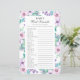 Papier Bébé mot brouille. Jeu de baby shower fleuri viole