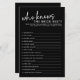 Épicez votre douche nuptiale avec le Black Who Know The Bride meilleur jeu de Fête des mariées! Ce jeu minimaliste ajoute une touche moderne à toute douche nuptiale avec son design contemporain et propre. Avec des invites réfléchies pour révéler la personnalité et les préférences de la mariée, ce jeu encourage le rire et la compétition amicale entre les invités. La mariée sera ravie de découvrir qui porte la plus grande attention aux petits détails qui la rendent unique.