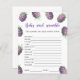 Carte d'invitation baby shower mignonne avec aquarelle illustrant les mûres. Le texte dit "un bébé doux aux baies est en route." Éléments correspondants disponibles. Réponses : CRAVINGS, PLEIN, PACIFICATEUR, BOUTEILLE, LUMIÈRE NOCTURNE, LULLABY, STROLLER, ÉPIDURAL, BRÛLE, CHAISE HAUTE, SAC DE DIAPER, ÉPONSE