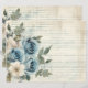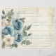 Blue and White Floral antique vintage prapbooking en détresse et papier journal en papier à papier artisanal. 11x8,5 pouces.