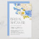 Invités Invitations à votre événement avec cette invitation à la papeterie de douche à nuptiale florale personnalisable. Il présente un bouquet d'aquarelles bleu et blanc avec des accents floraux et verts. Personnalisez cette invitation de douche nuptiale hydrangea en ajoutant le nom, l'heure, la date et d'autres détails de l'événement. Cette invitation botanique à la douche de nuptiale est parfaite pour les douches de nuptiale du printemps et de l'hiver.