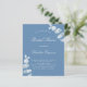 Un arrière - plan bleu poussiéreux, décoré de tiges d'eucalyptus, sprigs. Personnalisez et ajoutez un nom et des détails du parti.