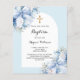 Papier Bleu floraux arc croix garçon baptême invitation