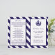 Ces programmes sont parfaits pour tout couple qui planifie un mariage romantique en bord de mer. Le design est orné d'un motif blanc marine bleu navire sur une marine nautique et un arrière - plan rayé blanc. La conception simple peut être personnalisée pour convenir à votre événement spécial et sera la commande parfaite de service pour toute soirée nautique sur la plage, y compris : douches nuptiales, fiançailles, wedding showers, fêtes d'anniversaire et bien plus encore.