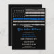 Célébrez votre graduation de l'académie de police, et amis invitations et famille à votre fête de graduation de l'application de la loi avec cette rustique usée de la ligne Bleue mince Police Graduation Invitation - Etats-Unis Drapeau américain design dans les couleurs du drapeau de la police, dessin en détresse . Personnalisez avec le nom, l'académie de police, le lieu d'adresse et les détails rsvp. Cette invitation d'obtention de diplôme d'officier de police peut être utilisée pour la retraite de police, il suffit de changer le texte lors de la personnalisation. Consultez notre collection pour trouver les cadeaux de fin d'études de la police, les faveurs de la fête et les fournitures. DROIT D'AUTEUR © 2020 Judy Burrows, Black Dog Art - Tous droits réservés. Budget Mince Ligne Bleue Police Académie Invitation de diplôme