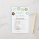 Ces adorables Guess The Price Game Cards sont un excellent moyen de lancer le plaisir à votre Baby shower et garanti être un grand succès! Il vous suffit de les faire circuler pendant le Baby shower où vous pourrez vous amuser en devinant le prix de chaque article pour bébé. La personne avec le total le plus proche gagne ! La maman-to-be peut ramener les articles pour bébé à la fin de la douche. Vous pouvez même customiser les éléments de la liste ! Le design présente nos beignets dessinés à la main dans des couleurs pastel avec des confettis saupoudrés.