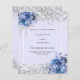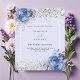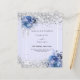 Un arrière - plan de couleur lavande douce décoré de roses bleus, de fleurs et de confettis faux argent. Personnalisez et ajoutez vos noms et les détails du mariage. Lettres noires. 1 feuille = 1 invite imprimé bord à bord.